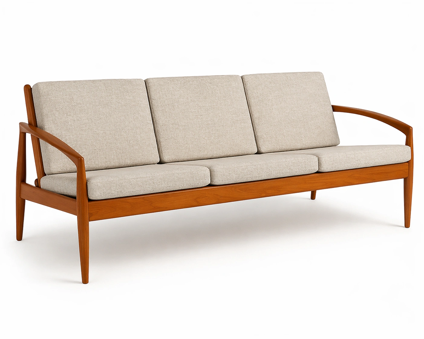 Beschreibung:Elegantes 3er sofa mit stabilem holzrahmen und weichen sitzpolstern. Zeitloses mid century design mit klaren linien und angenehmem sitzkomfort. Ideal fuer wohnzimmer oder lounge bereich.