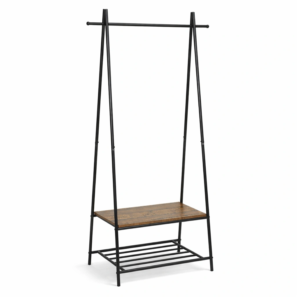 Beschreibung:Minimalistischer kleiderstaender mit stabiler metallkonstruktion und integrierter sitzbank. Untere ablage bietet platz fuer schuhe oder boxen. Perfekt fuer moderne wohnraeume oder kleine flaechen mit funktionalem design.